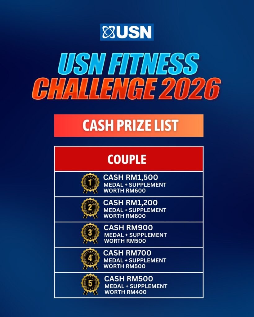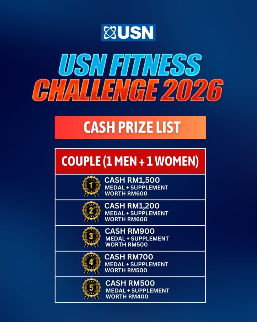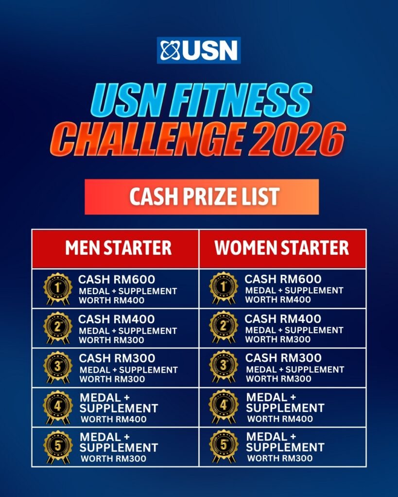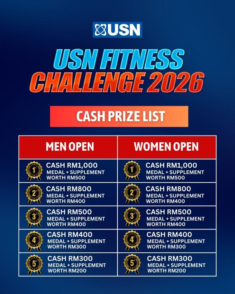 Over RM22,000 worth of prizes are up for grabs. Join us at the USN Fitness Challenge 2026 and fight for your share of the podium.