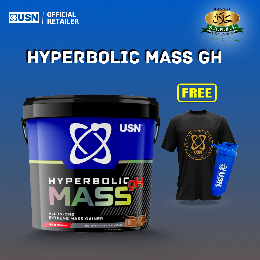 The USN Hyperbolic Mass 4kg is a high-calorie mass gainer designed to support muscle growth and recovery. Each serving delivers approximately 1,067 calories, 60g of protein, and 7,500mg of creatine, making it suitable for individuals with a fast metabolism or those aiming to increase body mass. The formula also includes a blend of vitamins and amino acids to enhance performance and recovery. It comes in various flavors, including Dutch Chocolate, Vanilla, and Strawberry Cheesecake.